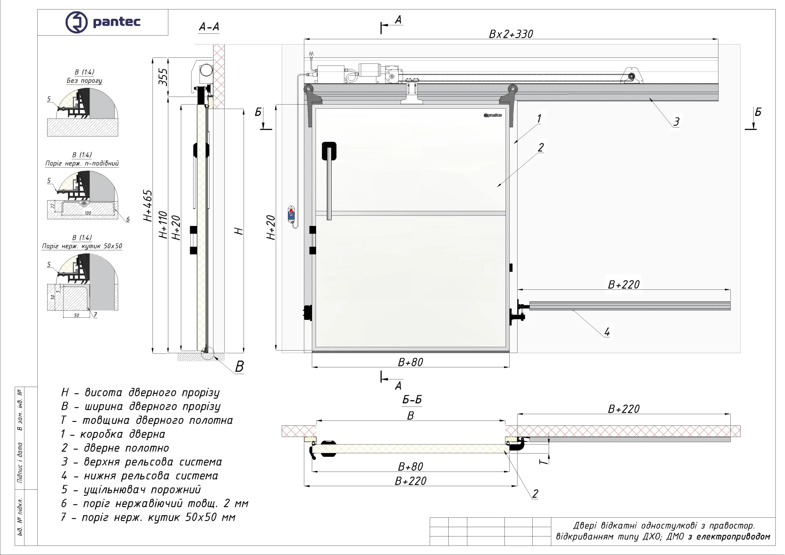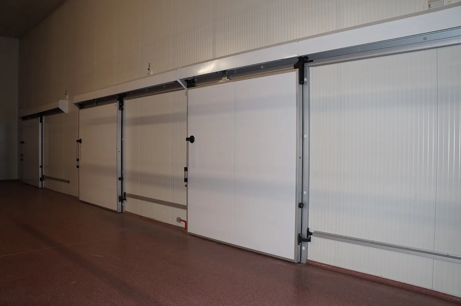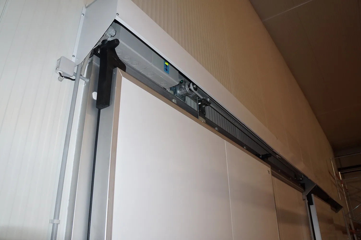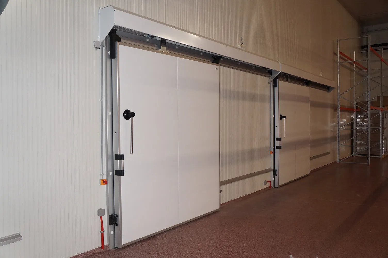 Анодированный алюминиевый профиль, заполненный жестким утеплителем с закладными элементами для крепления фурнитуры. Низкотемпературные двери комплектуются нагревательным кабелем. Для кабеля в дверной коробке предусмотрен канал, который закрывается алюминиевой крышкой. Конструкция дверной коробки обеспечивает легкую и быструю замену кабеля путем снятия алюминиевой крышки, что не требует остановки работы камеры. Специальный уплотнитель с фольгированным защитным покрытием на внутренней стороне дверной коробки обеспечивает плотное прилегание к стене.