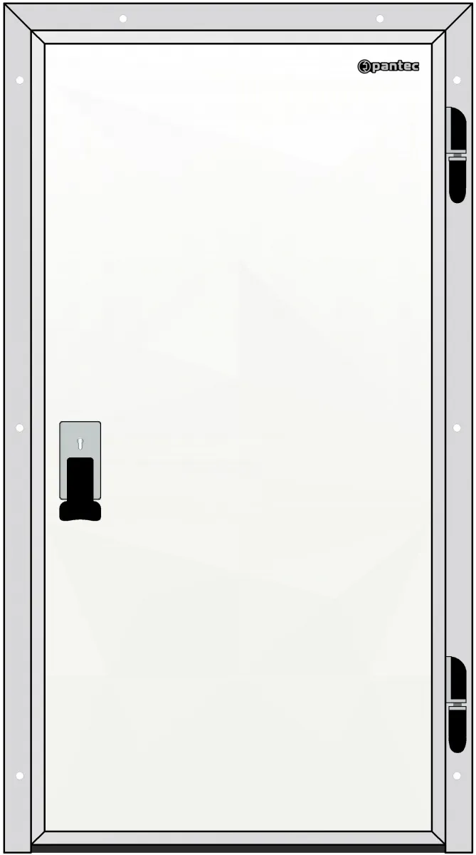Высококачественная специальная фурнитура (Италия). Запорное устройство имеет эргономичный дизайн и встроенный замок с комплектом ключей, а также возможность регулировки герметичности путем притяжения полотна к дверной коробке. Дверные петли с микролифтом и возможностью вертикальной регулировки. Внутренняя ручка аварийного выхода с флуоресцентной наклейкой.