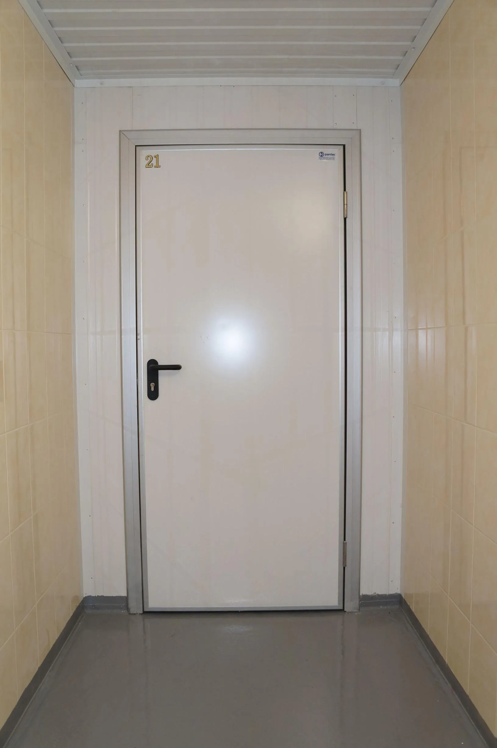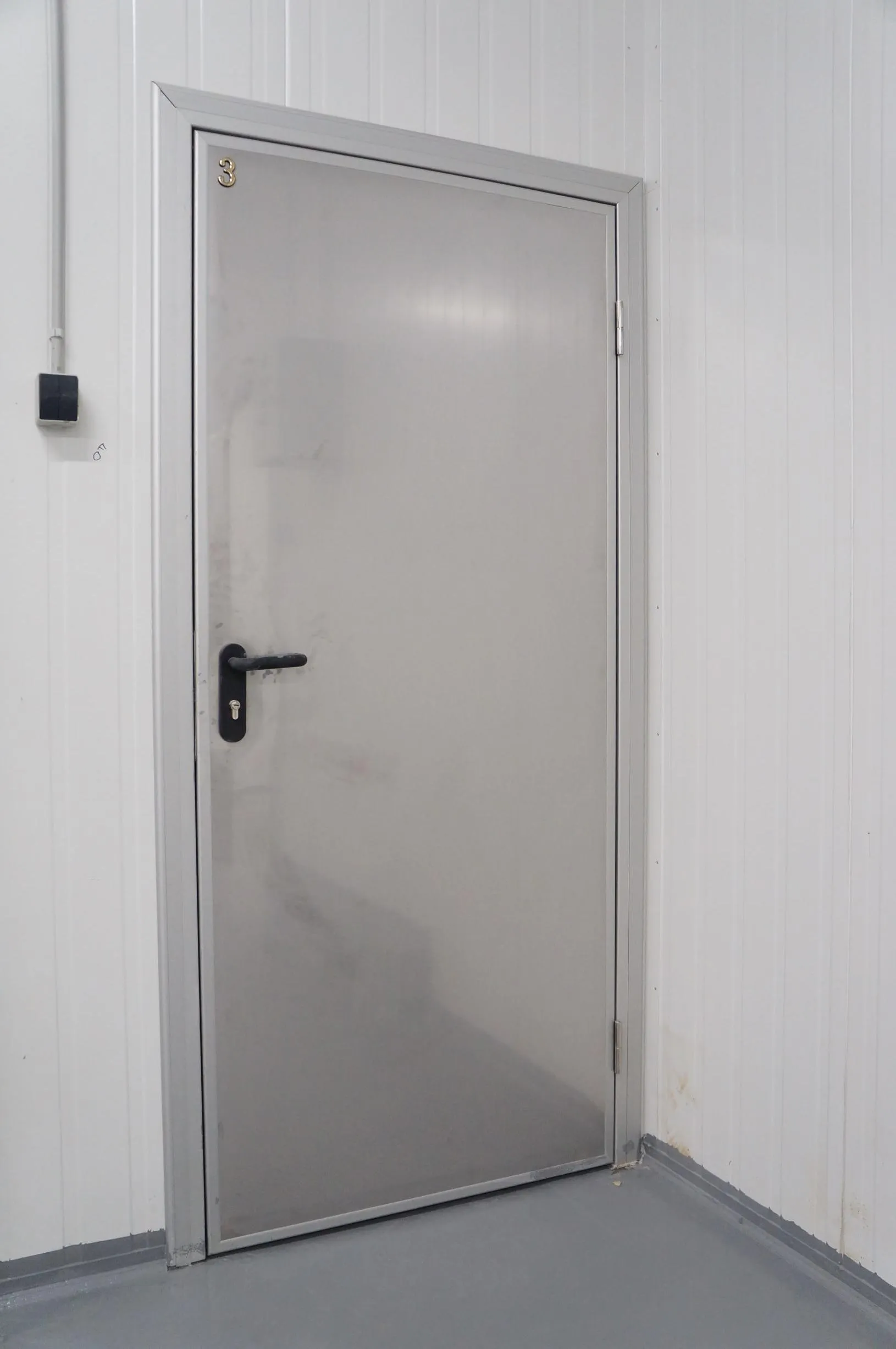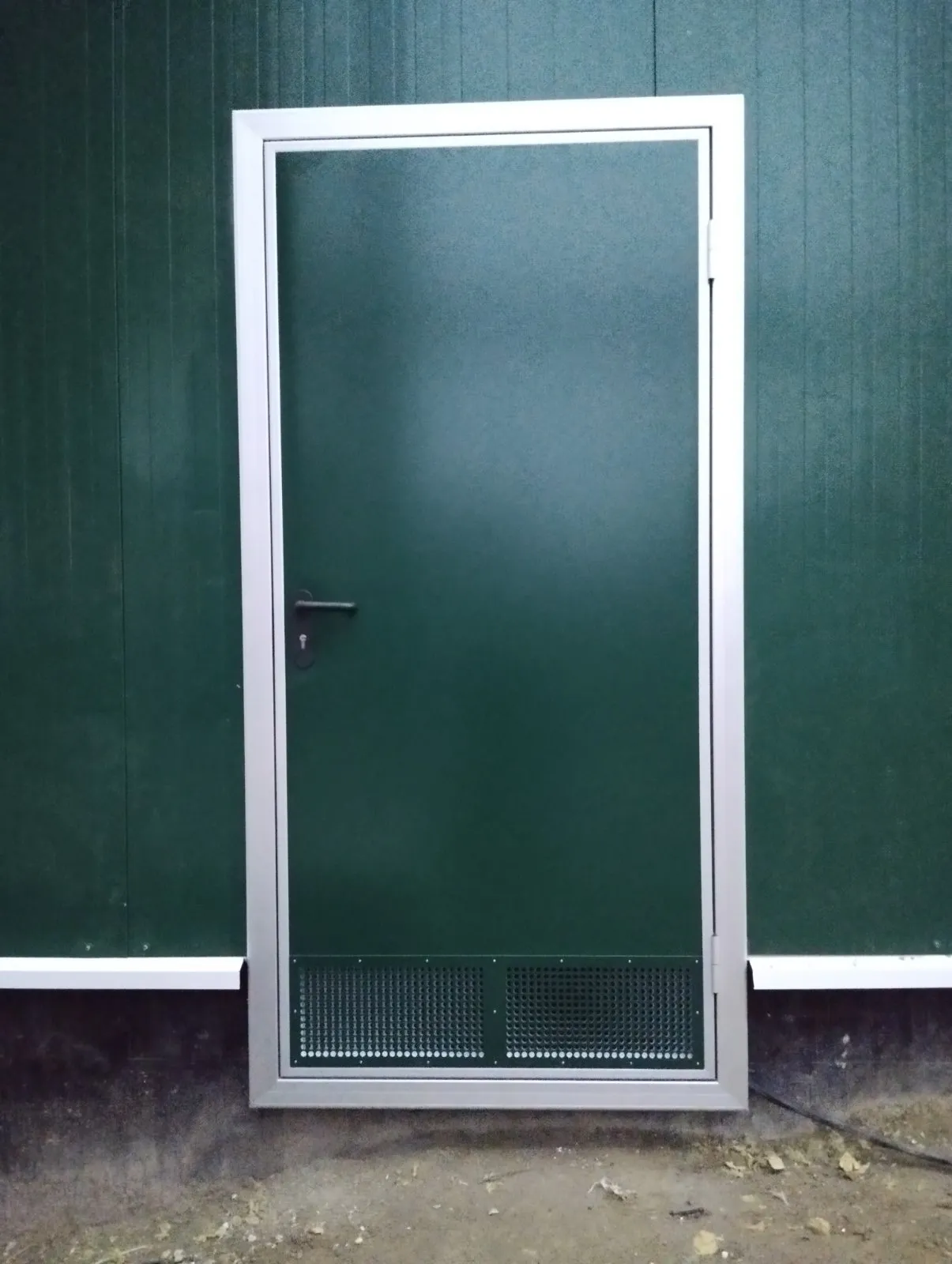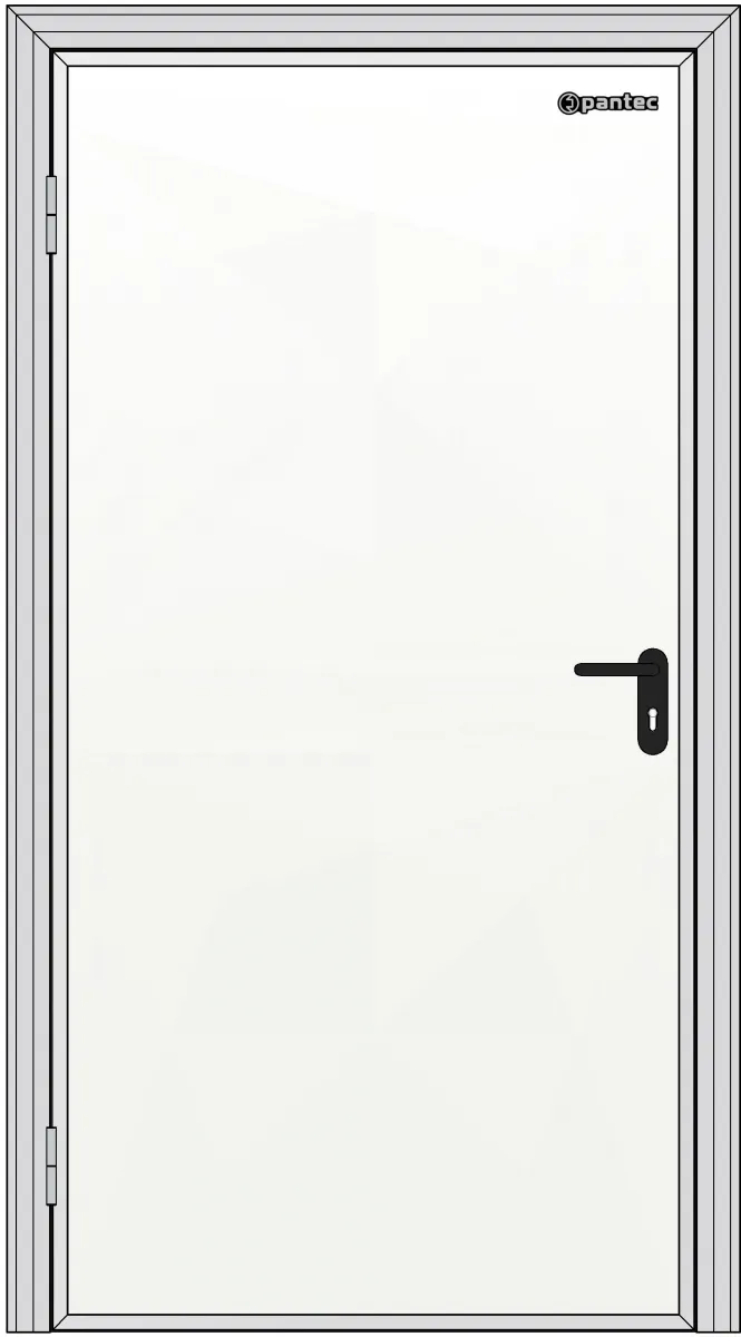 Дверное полотно с закладными элементами, к которым крепится фурнитура, изготавливается как цельнолитое, что исключает клеевые соединения. Полотно обрамлено анодированным алюминиевым профилем, что обеспечивает прочность и долговечность эксплуатации.